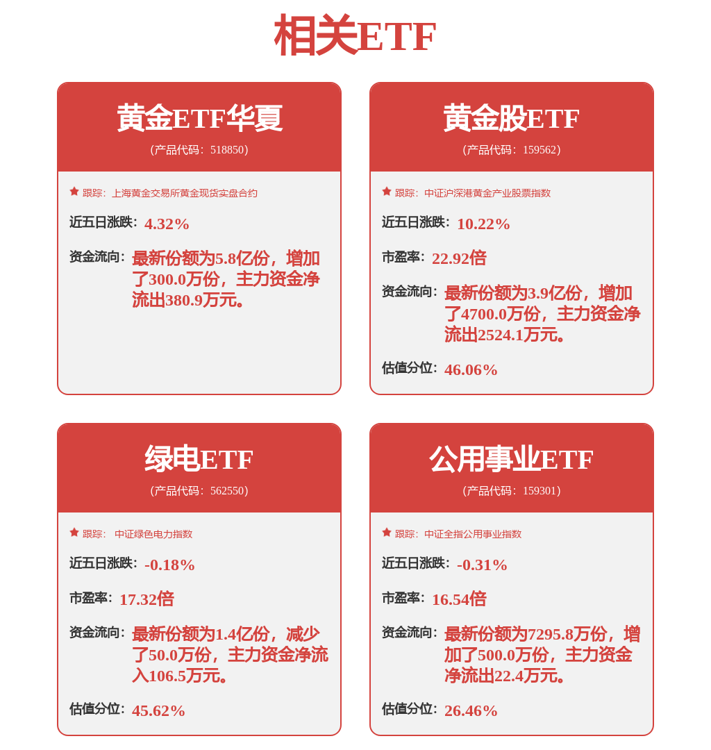 9月3日,三大股指早盘小幅上涨股莘配资,其中黄金板块持续拉升。截至上午9:40,黄金ETF华夏(518850)涨1.26%、黄金股ETF(159562)涨2.78%。相关成分股赤峰黄金涨4.21%、中金黄金涨3.32%、山东黄金涨3.29%,紫金矿业、山金国际、老铺黄金等小幅跟涨。
